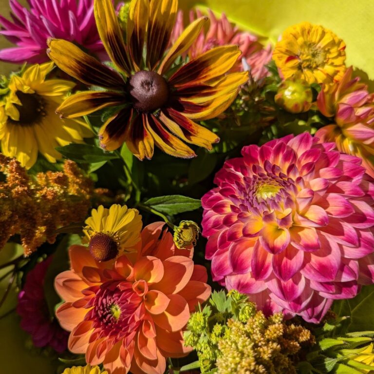 Na een korte introductie over biologische snijbloemen ga je  aan de slag. Bloemen plukken, kijken en kiezen. Daarna schik je de bloemen tot een boeket in een stijl die bij je past. Hierbij helpen wij je natuurlijk.
